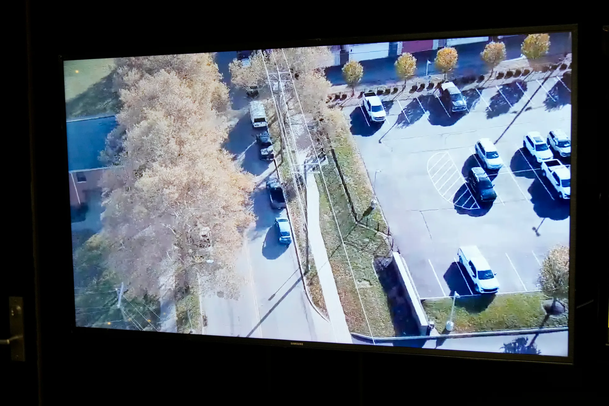 A live monitor shows the camera view of a Skydio X10 drone piloted by a Cincinnati Police officer from the department's District 1 headquarters on Nov. 13. Sam Greene/The Enquirer